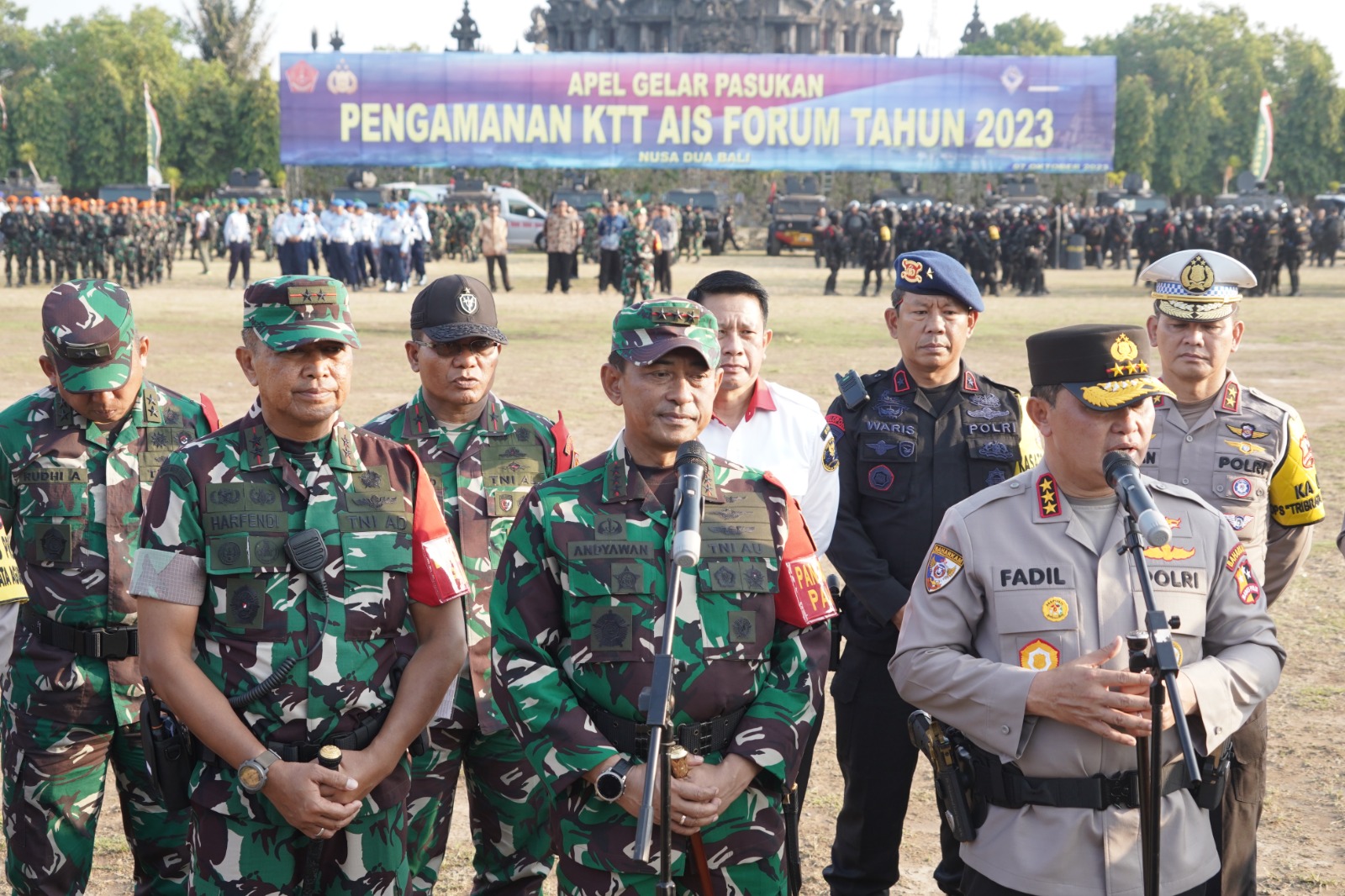 Led by Pangkogabwilhan II Marshal TNI Andyawan Martono Putra and Head of Security and Security for the National Police, Commissioner General of Police, Dr. H. Mohammad Fadil Imran, M.Sc., the troop call, which was attended by thousands of TNI-Polri personnel, was aimed at checking the readiness of personnel and material who would carry out security duties for the Heads of State and delegates participating in the AIS Summit on October 11.
