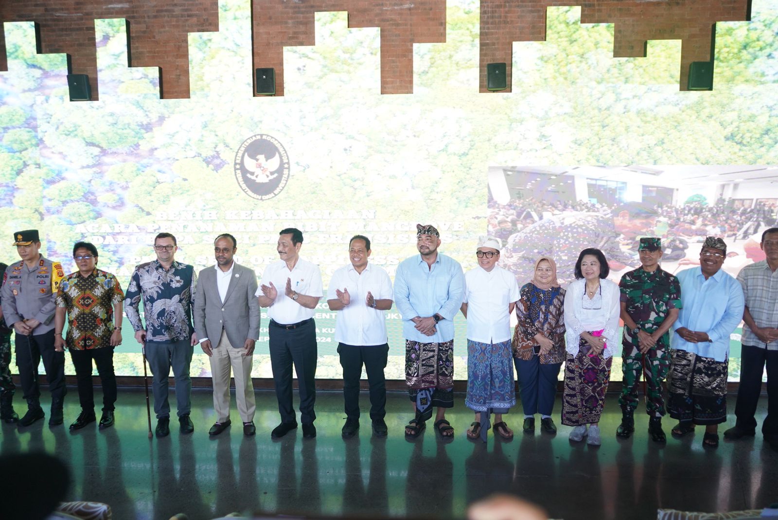 Setelah penyampaian sambutan dari Menko Marves RI seluruh peserta melaksanakan foto bersama dan dilanjutkan dengan penanaman pohon mangrove di kawasan University In Diversity (UID) Campus Kura – Kura Bali Jl. Pulau Serangan.