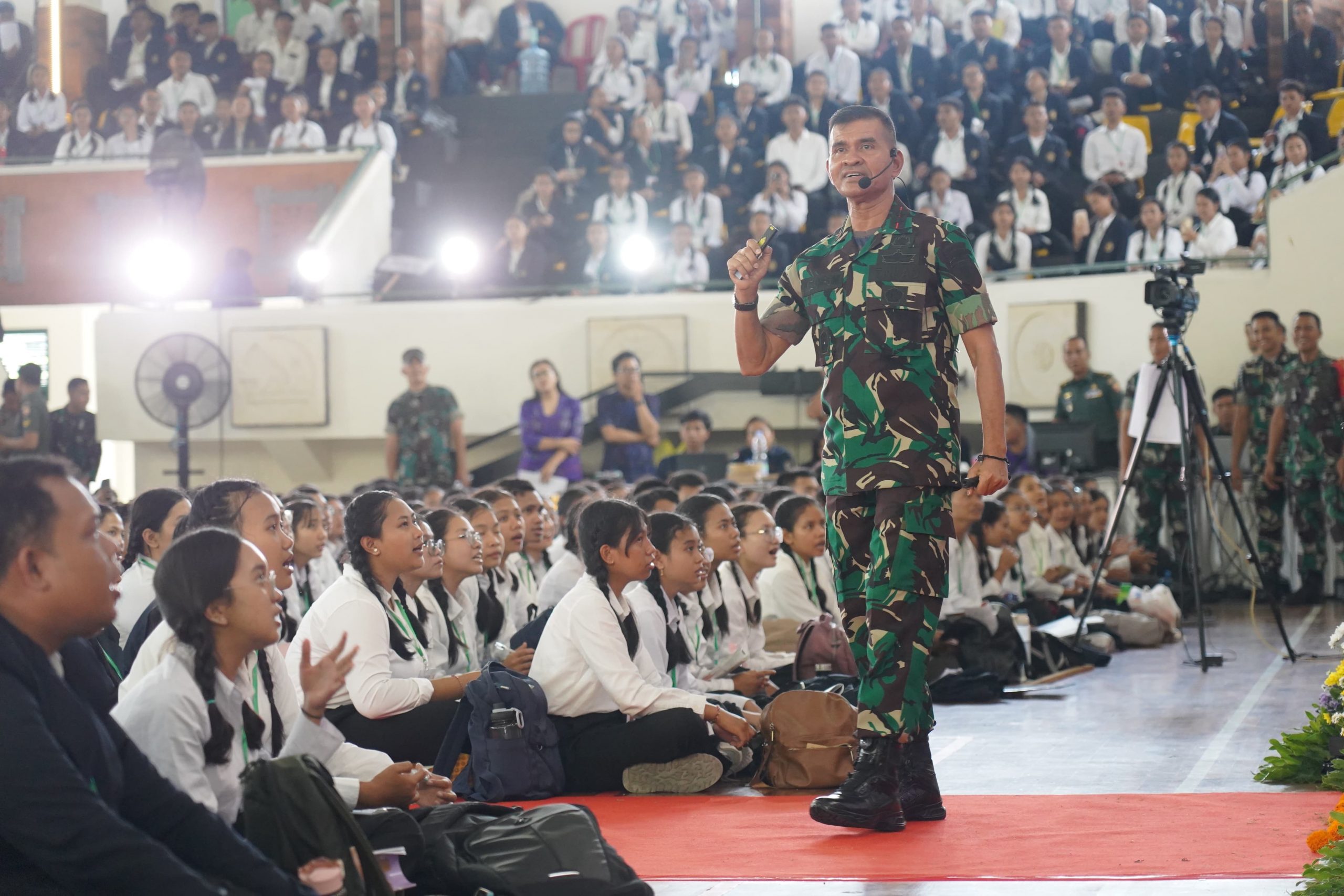 “Kalian memiliki peran strategis dalam menentukan arah masa depan bangsa ini. Dalam era globalisasi dan teknologi, kita harus mampu bersaing tanpa melupakan jati diri sebagai bangsa Indonesia. Tingkatkan kreatifitas dan inovasi dalam membangun diri sebagai calon pemimpin Indonesia di masa depan yang maju dan mandiri. Bangun terus kompetensi kalian, dengan tetap membangun karakter Bela Negara. Indonesia Emas 2045 adalah kalian,” demikian tegas Pangdam Zamroni.